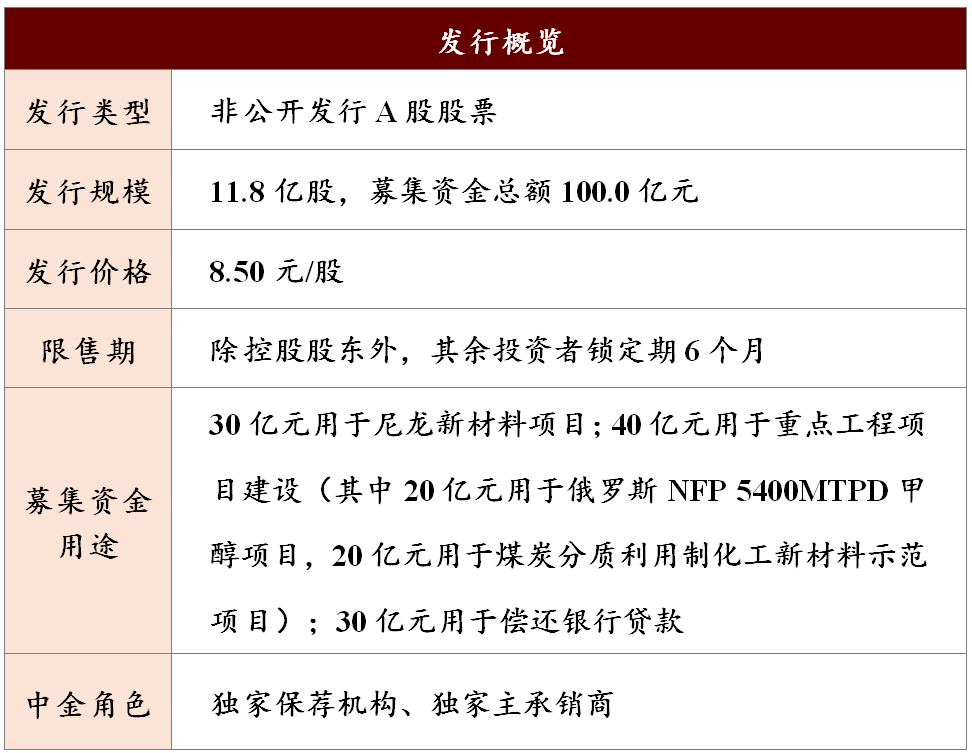 中国化学作为国家“走出去”战略和“一带一路”倡议的先行者和开拓者,本次成功发行后将进一步增强工程建设服务能力、巩固市场地位、提升核心竞争力。本次发行的募集资金将主要用于尼龙新材料项目以及重点工程项目建设。其中,尼龙新材料项目(生产己二腈产品)填补了国内相关领域的空白,解决了“卡脖子”问题,高度契合国家、行业和公司未来发展战略。中金公司作为本次非公开发行的独家保荐机构,高质量执行项目,高效推动监管审核,充分挖掘投资亮点,助力中国化学实现价值重塑,并精准把握发行节奏,为本次发行成功引入国家级基金、知名公募、保险及市场化机构等,助力央企改革深化推进,激发企业发展新动力。